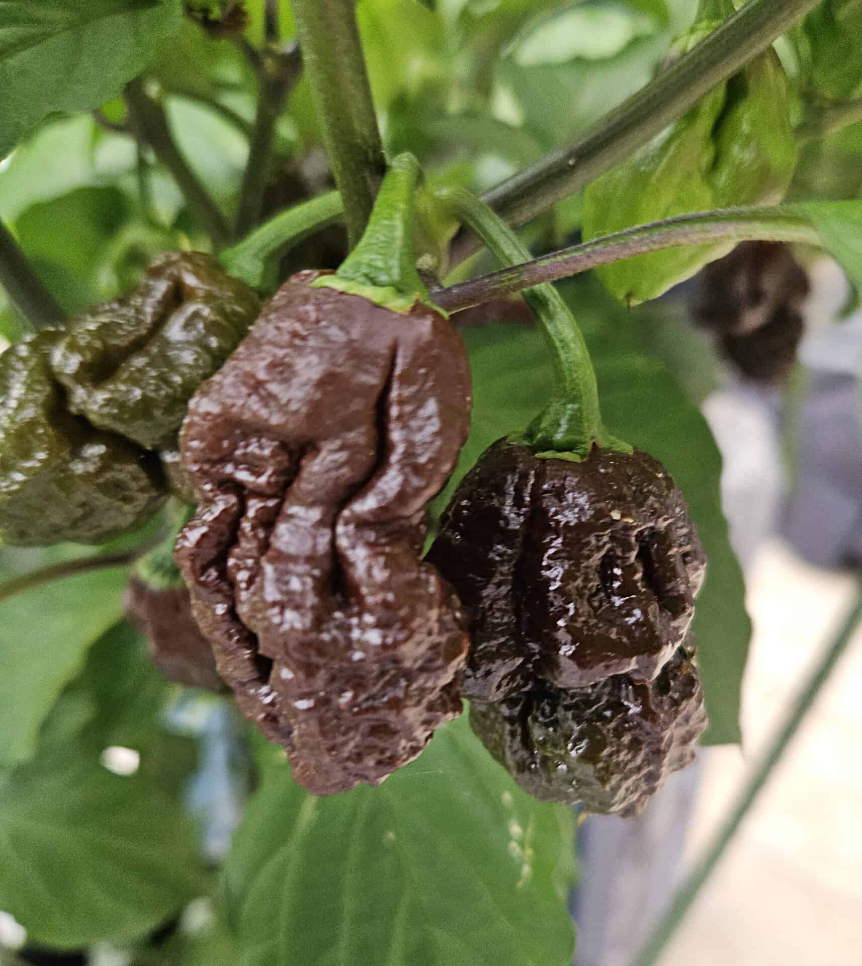 Plants grow vigorously and productively, with fruit ripening from dark green to deep chocolate brown. Its distinctive, wrinkled skin and pointed tail immediately indicate that you are not dealing with an ordinary chili here. Behind its fiery exterior, however, also lurks a rich, slightly fruity and earthy flavor - beloved of makers of hot sauces and true pepper enthusiasts.