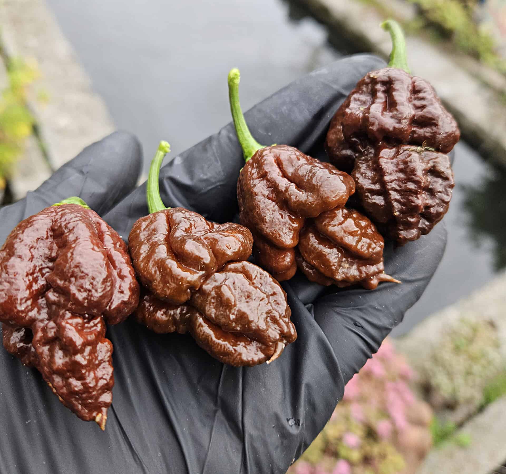 The Apocalypse Scorpion Chocolate is one of the most impressive superhots in the pepper world. This variety is a cross between the infamous Apocalypse and the Trinidad Scorpion, and combines the best of both: a explosive heat and a complex, smoky aroma.