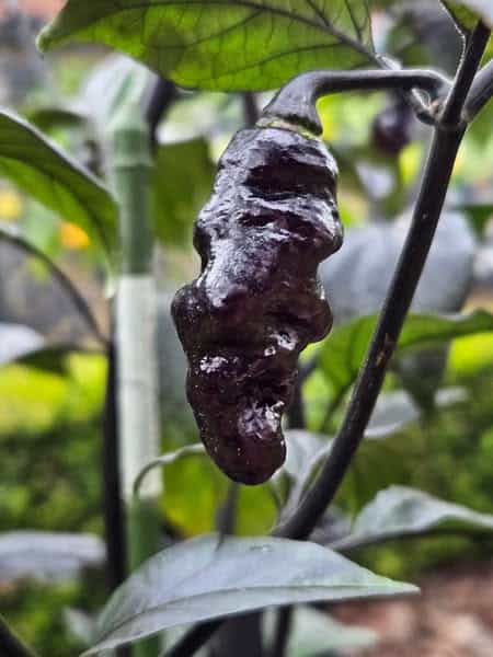 The Black Ruby is a striking, visually impressive chili pepper (Capsicum frutescens) with a shiny dark purple, almost black skin that transforms to deep crimson when ripe .