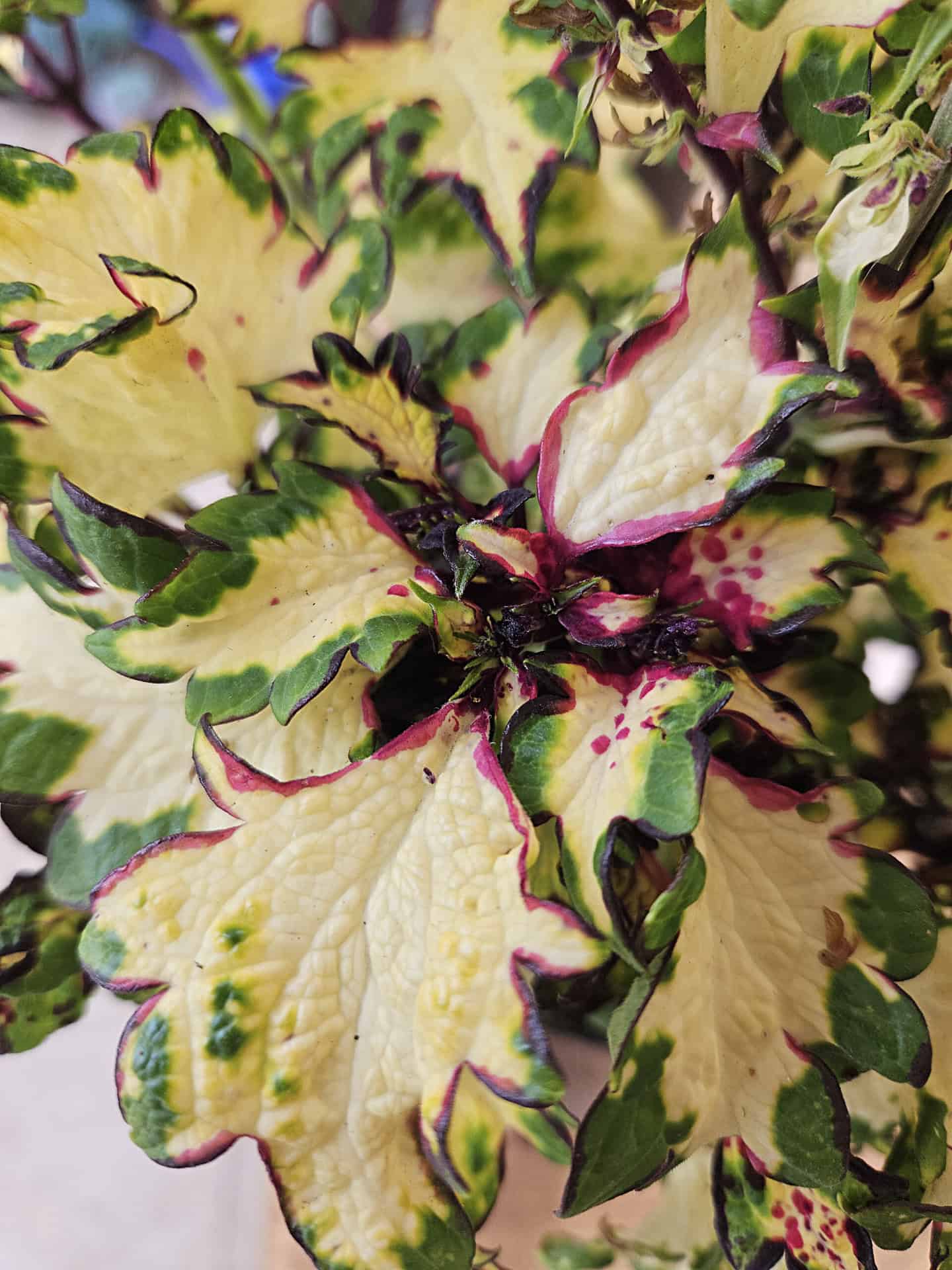 Coleus DG002 - Lemon yellow with artistic green and pink accents!