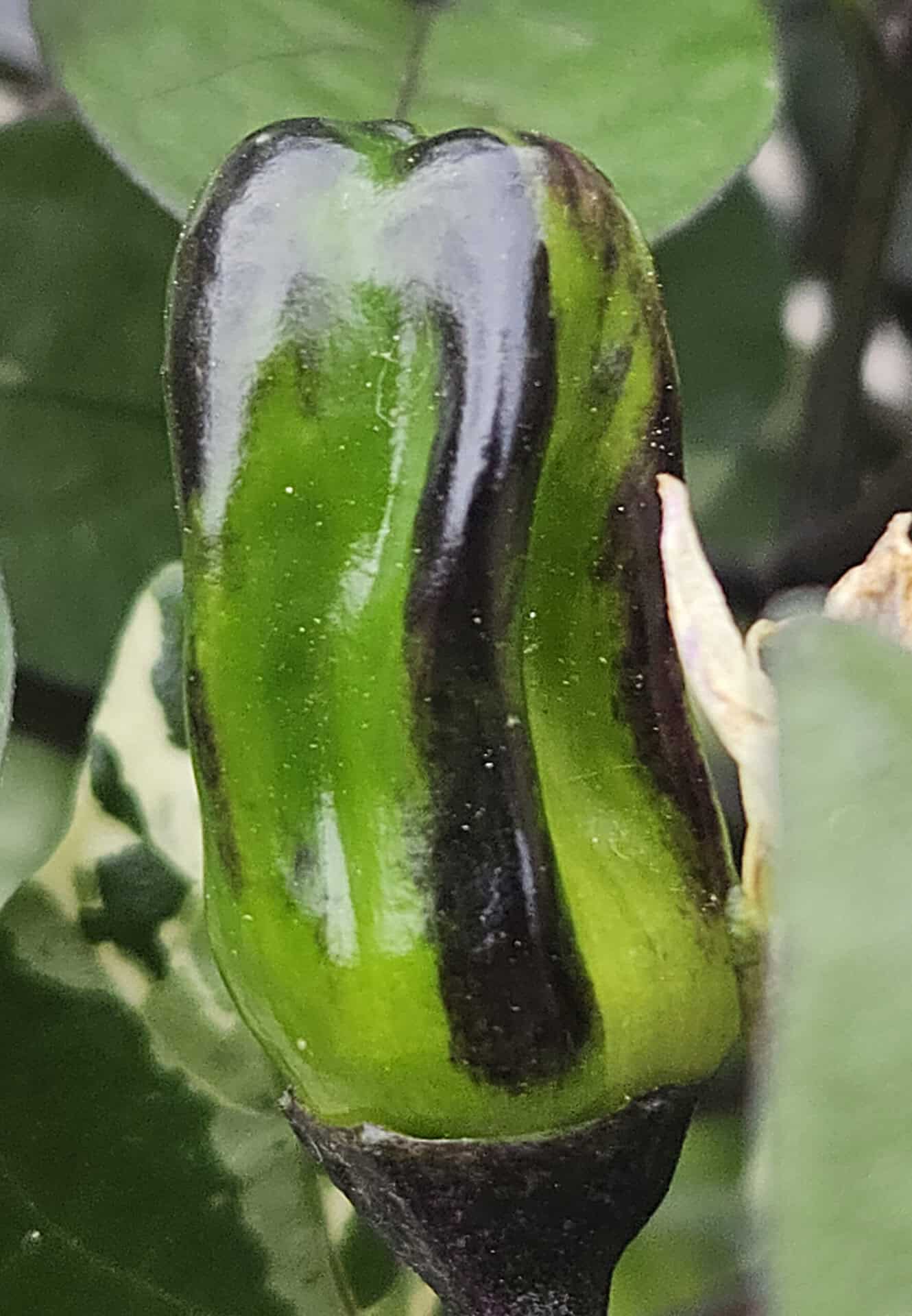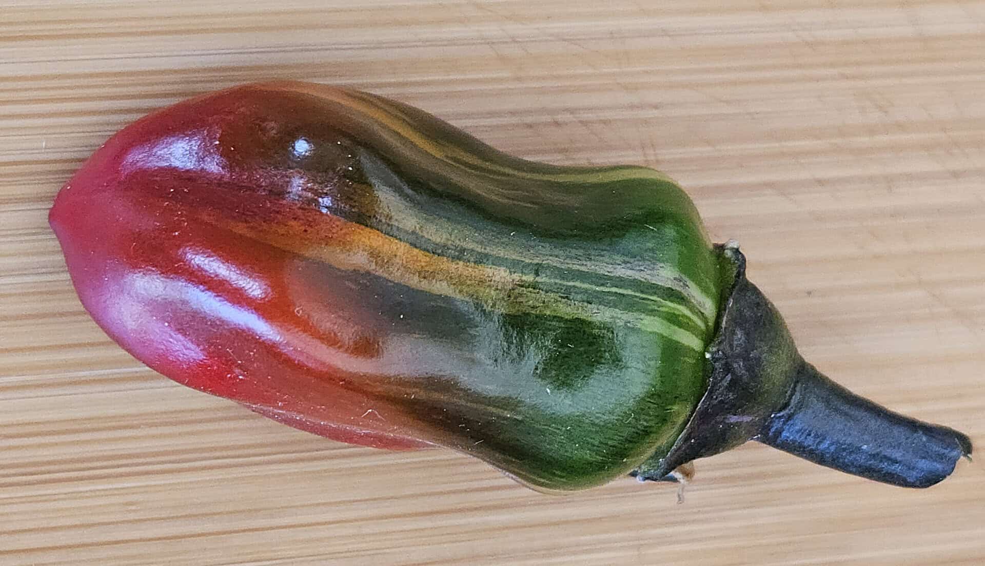 The Cuban Candy Fish Pepper is a unique and colorful chili pepper with a rich history. This variety is known for its striped, variegated fruits that ripen from green with light streaks to orange and eventually bright red. Its distinctive appearance makes this pepper not only extremely decorative, but also very popular in the kitchen. With a medium spiciness and a sweet, slightly fruity flavor, this is a versatile pepper that is delicious both raw, cooked and pickled.