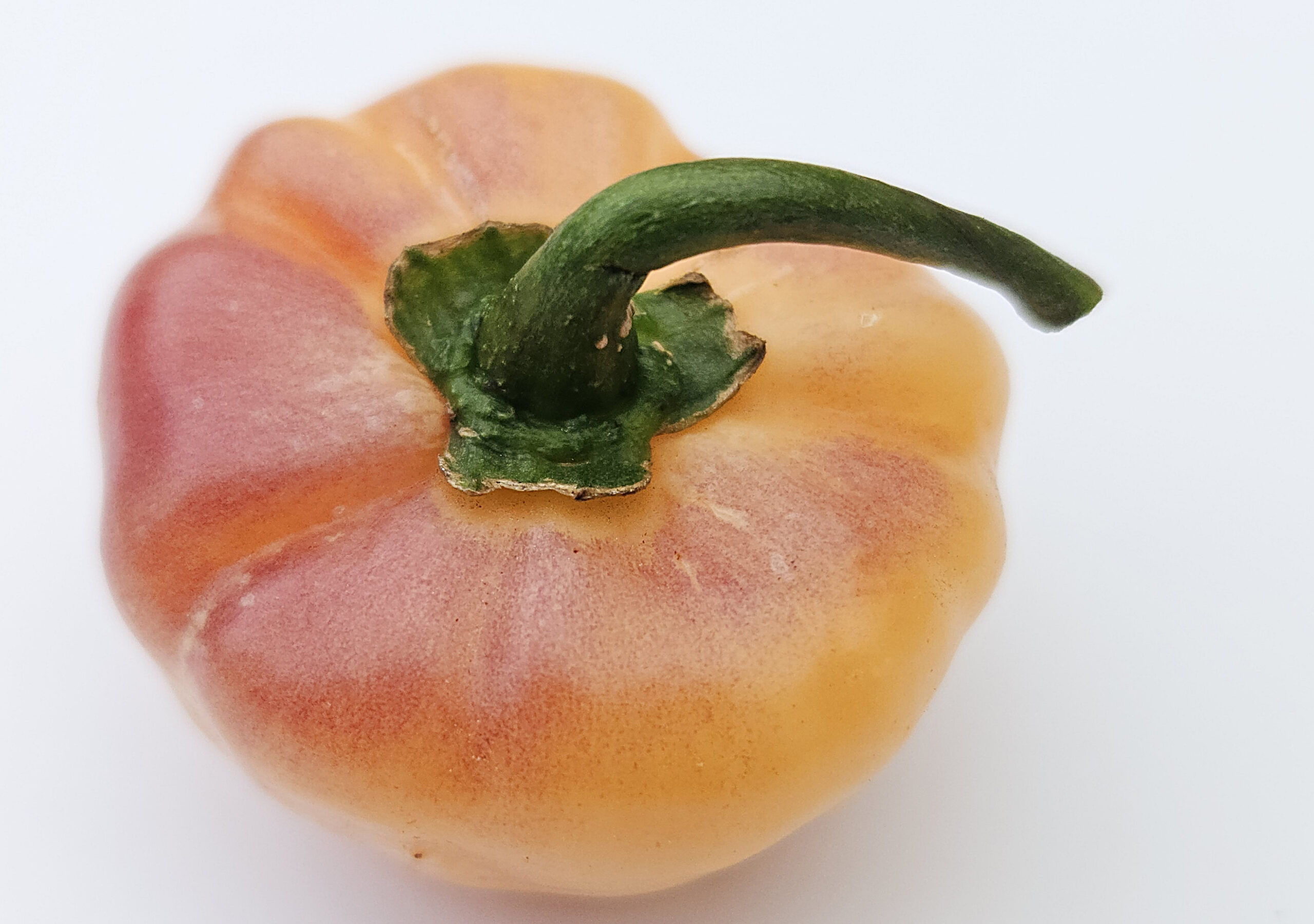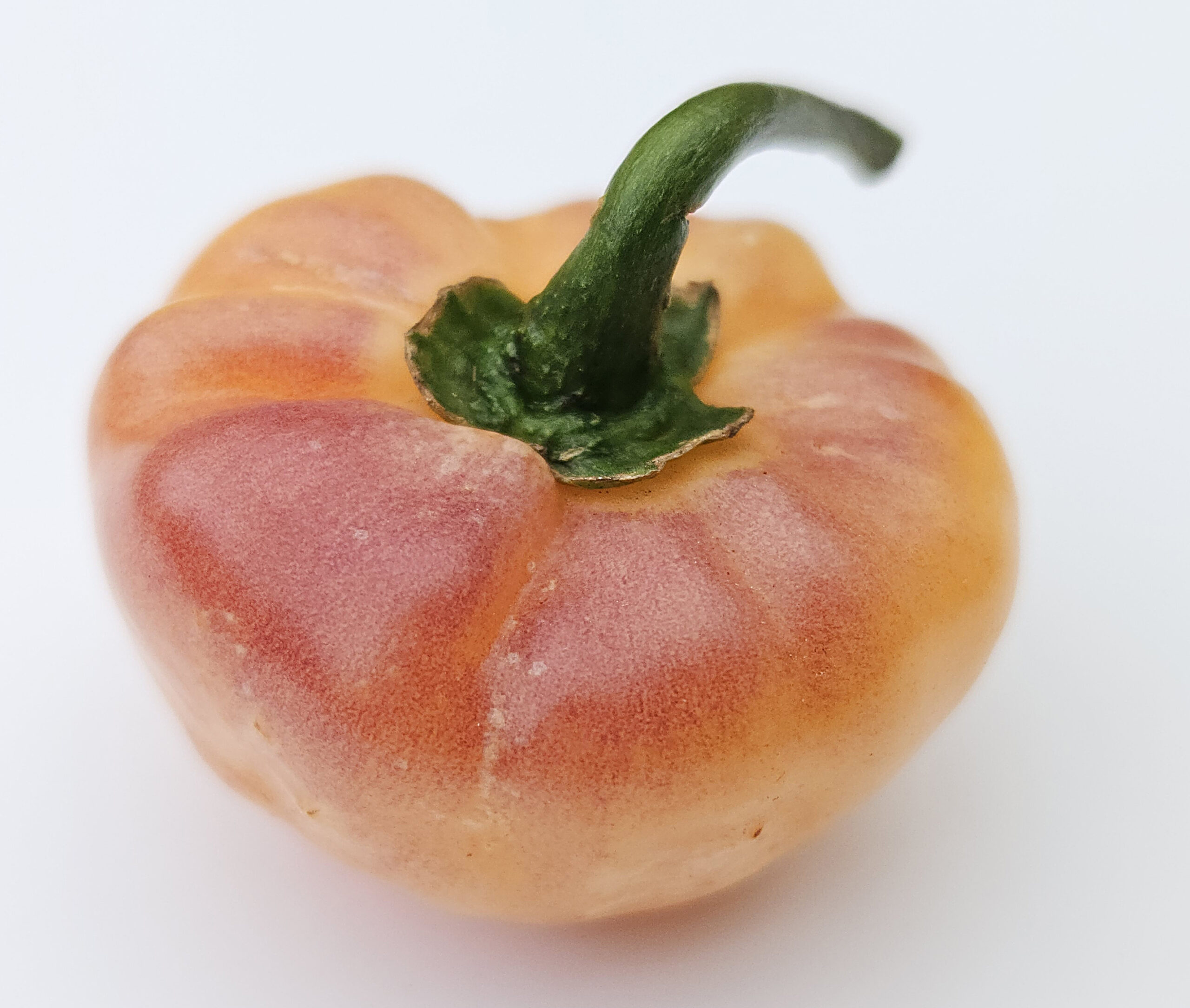 The Fairytale Cachucha is an enchanting variety within the well-known cachucha family, native to the Caribbean. This charming Capsicum chinense bears beautiful, ribbed bell-shaped fruits maturing from green to warm fairy hues: orange, apricot and soft red - As if they were straight out of a fairy tale.