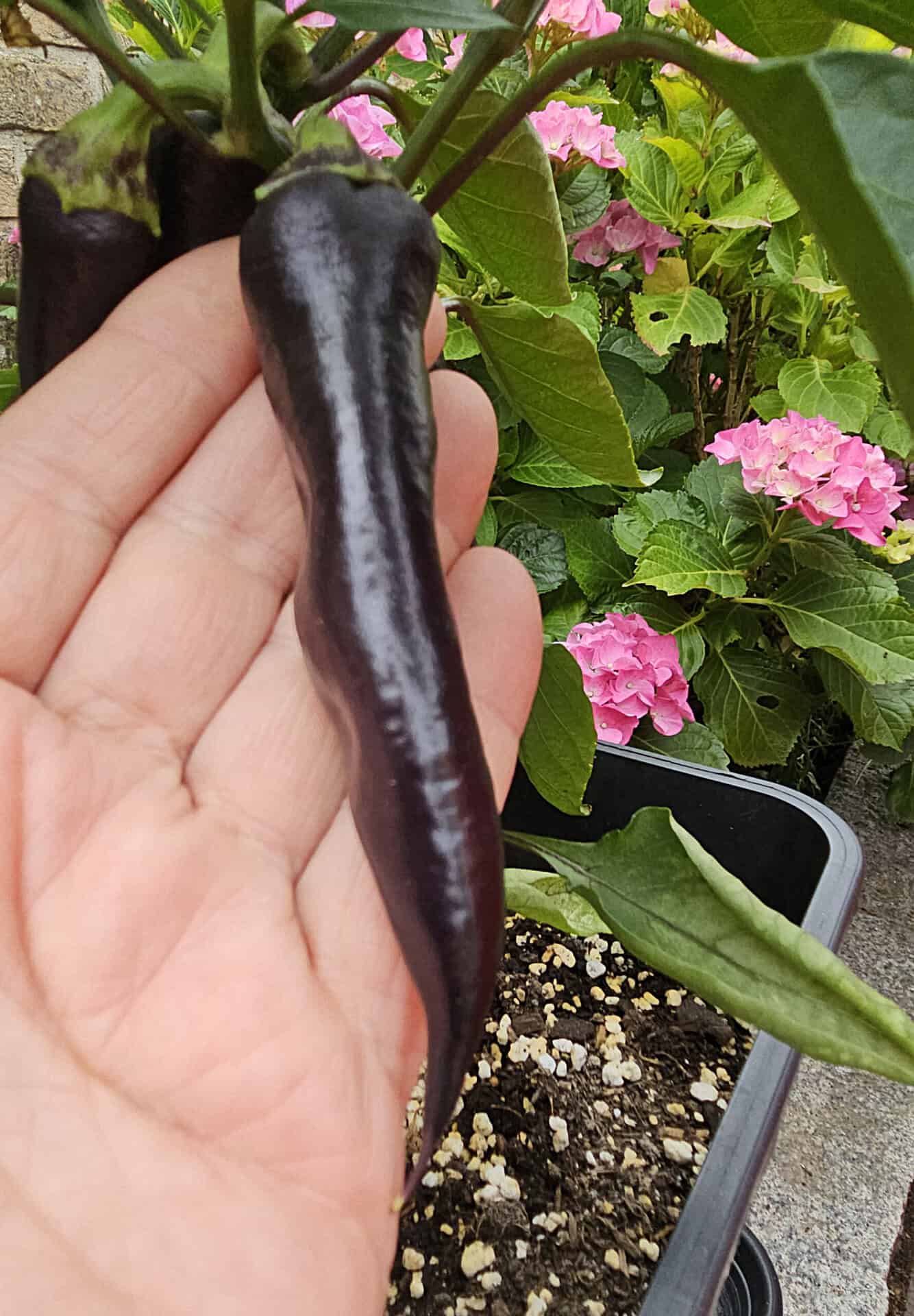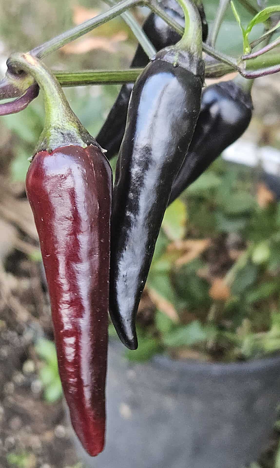 The Guindilla Verde Dark Pheno is an attractive, medium-hot chile from the Basque Country (northern Spain). Known for its slender, long fruits (9-12 cm) that ripen from green to dark wine red and lend themselves to pickling or fresh use - a tasty classic in Spanish and Basque cuisine