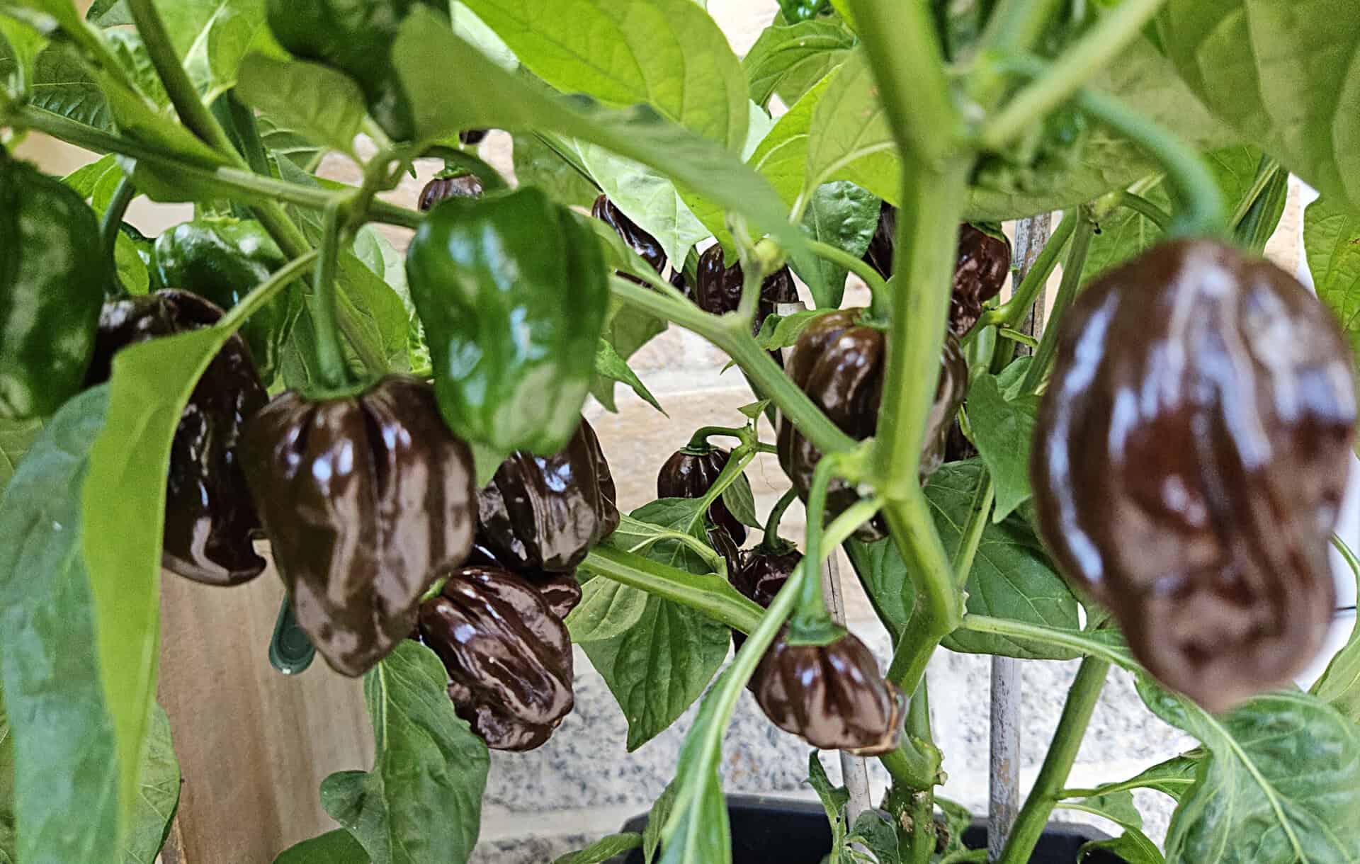 The fruits are medium-sized, wrinkled and ripen from green to a rich chocolate brown color. With a spiciness of 300,000 to 450,000 SHU the Habanero Chocolate is among the hot varieties, but it combines this with a unique, aromatic depth you won't easily find elsewhere.
