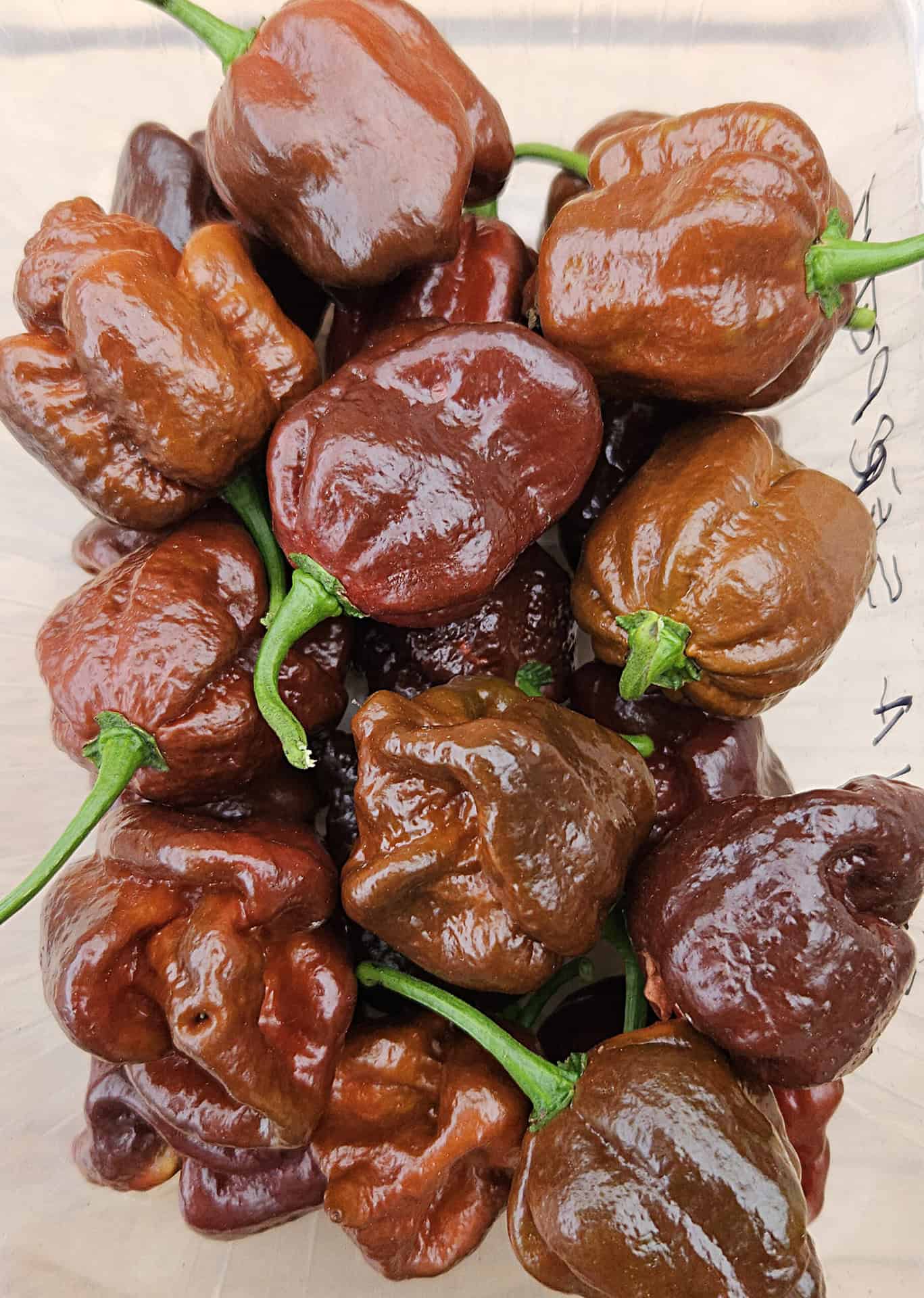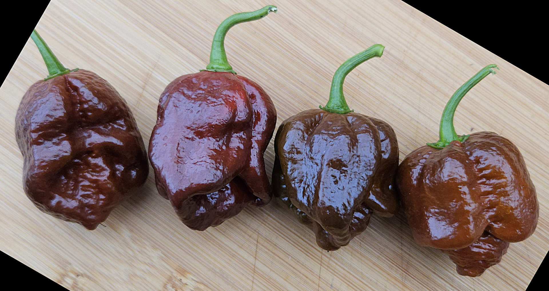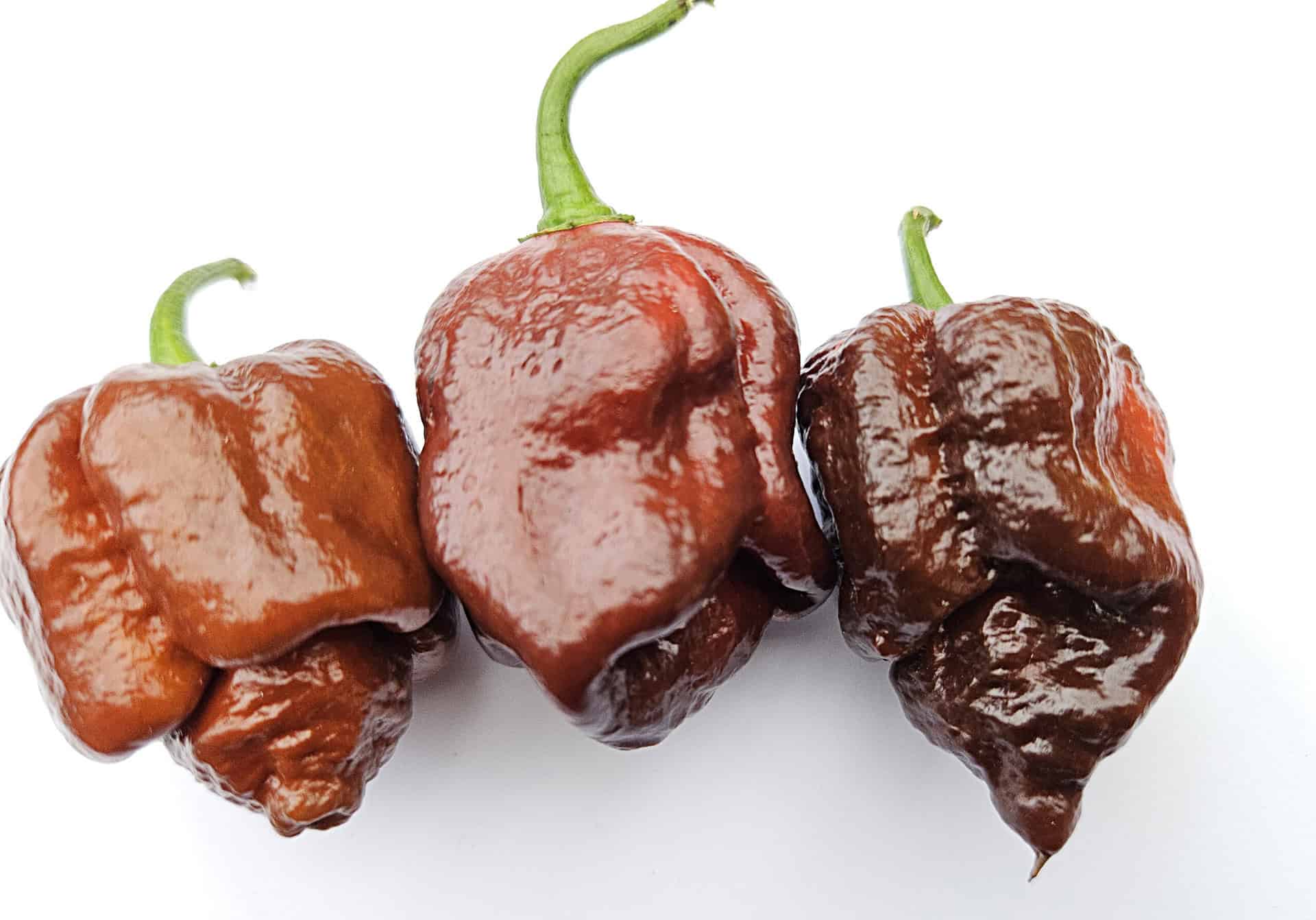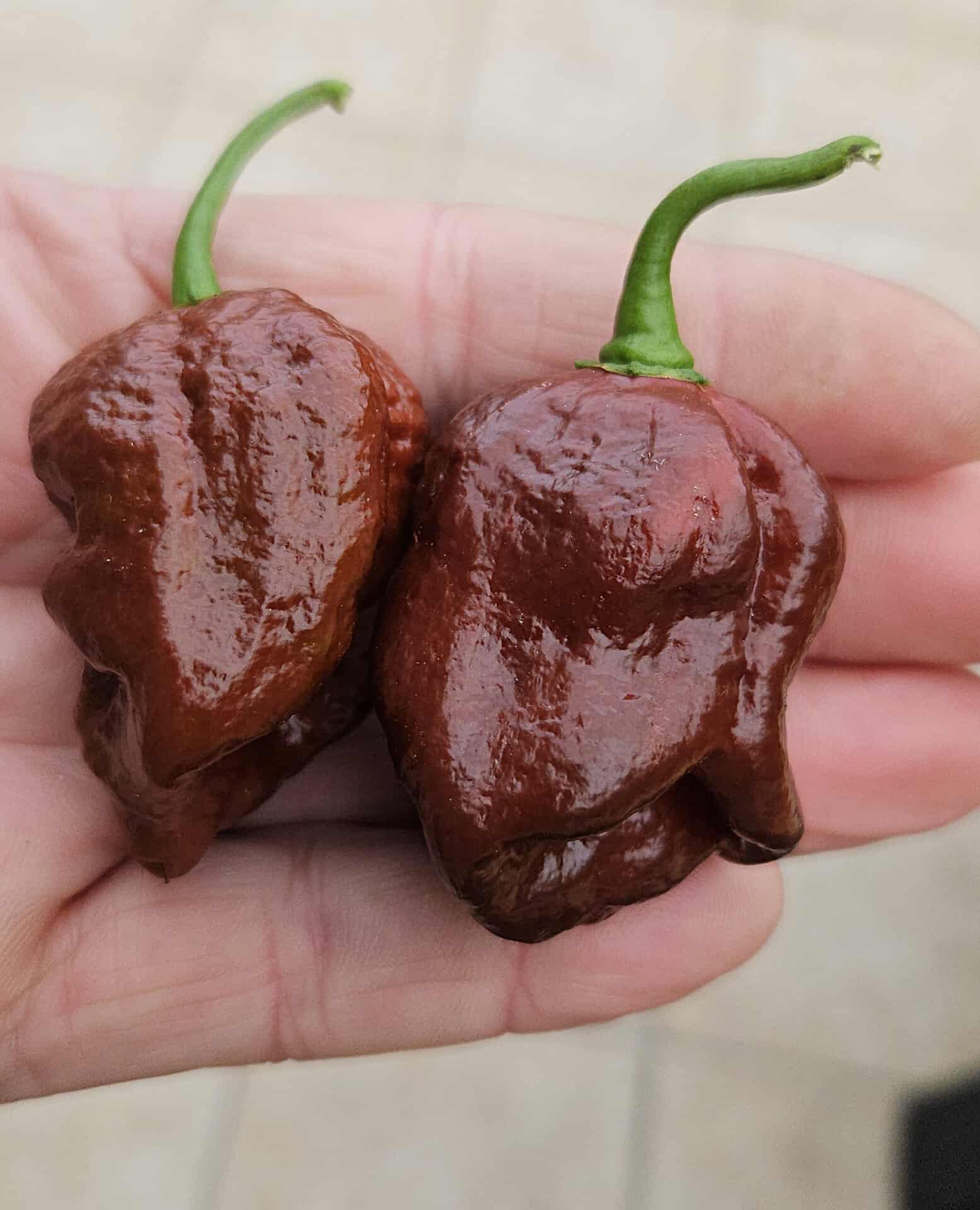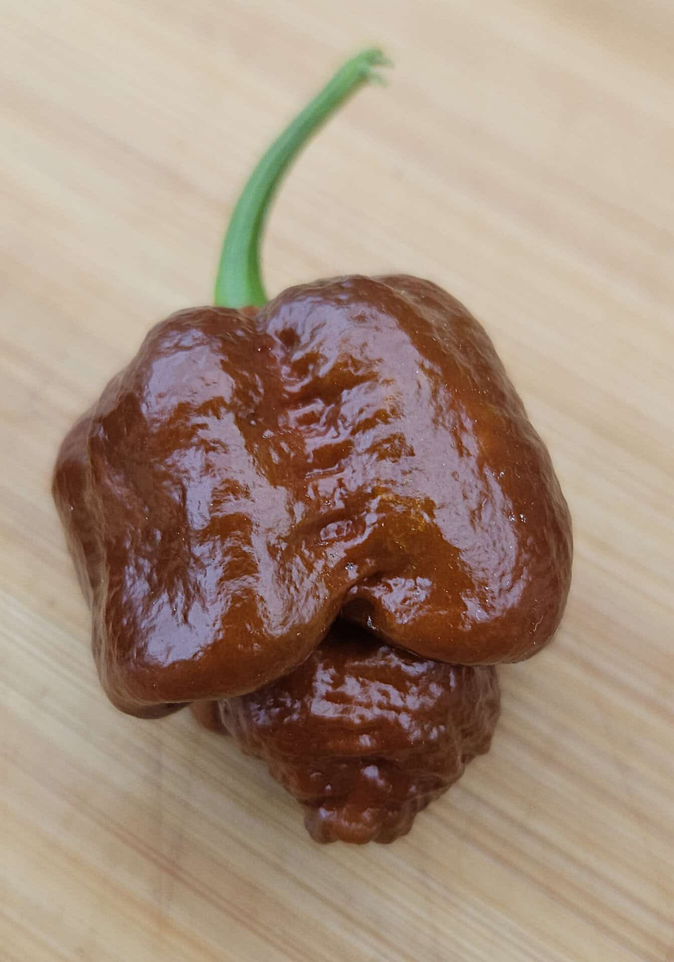 During ripening, the fruit changes from olive green to warm chocolate brown, sometimes with shades of red. The flavor is rich and complex: smoky, slightly earthy, with underlying sweetness familiar from many chocolate varieties in the superhot category.