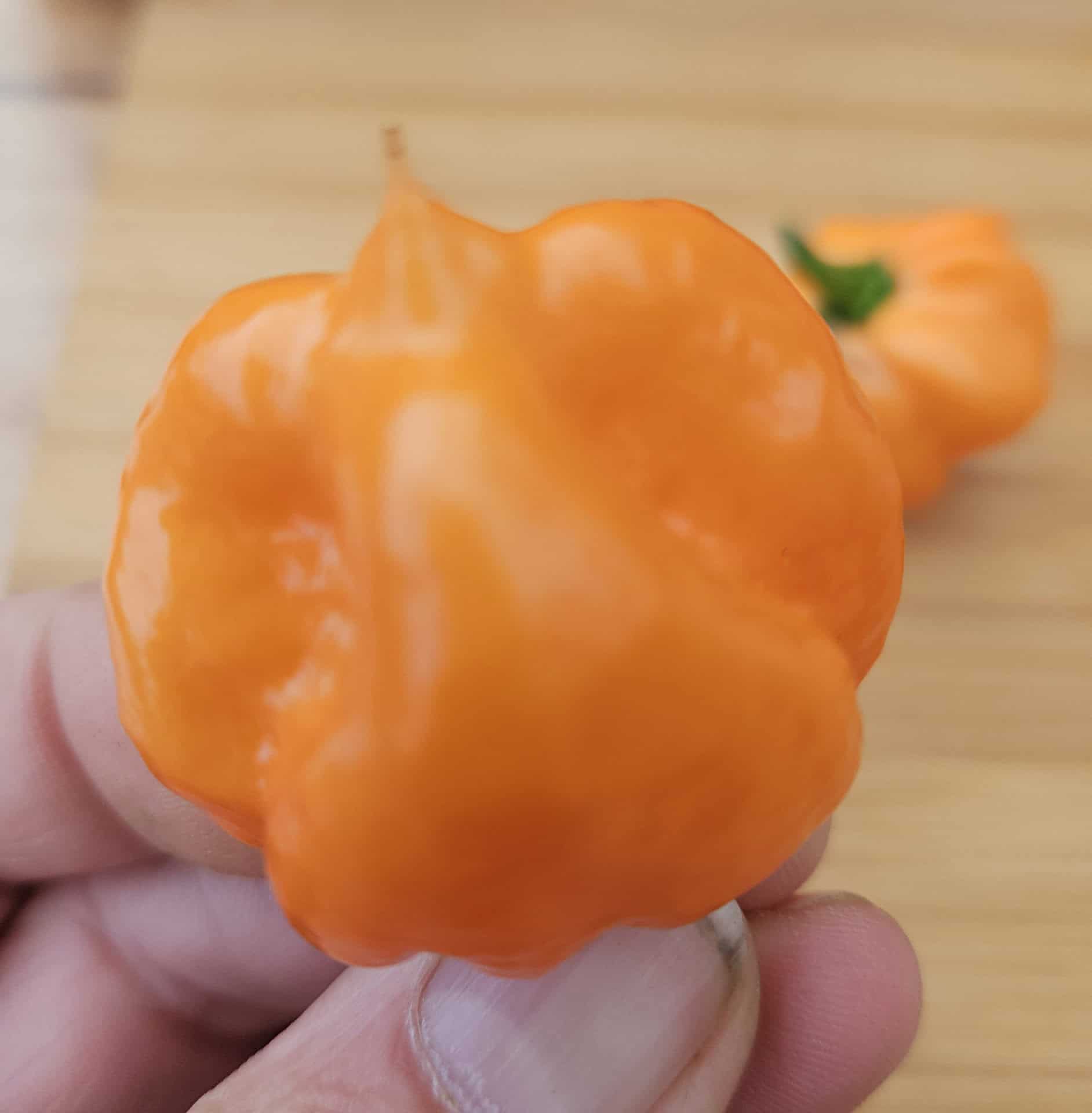 De Bahamian Goat is een prachtige, productieve peper uit de Bahama’s, geliefd om zijn tropische aroma en stevige superhot-bite. De vruchten rijpen van een zachte perzikkleur naar diep oranje en hebben die typisch hobbelige Habanero-look, maar met een extra fruitige punch.