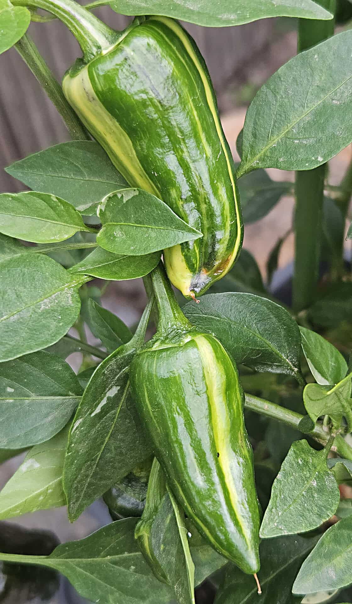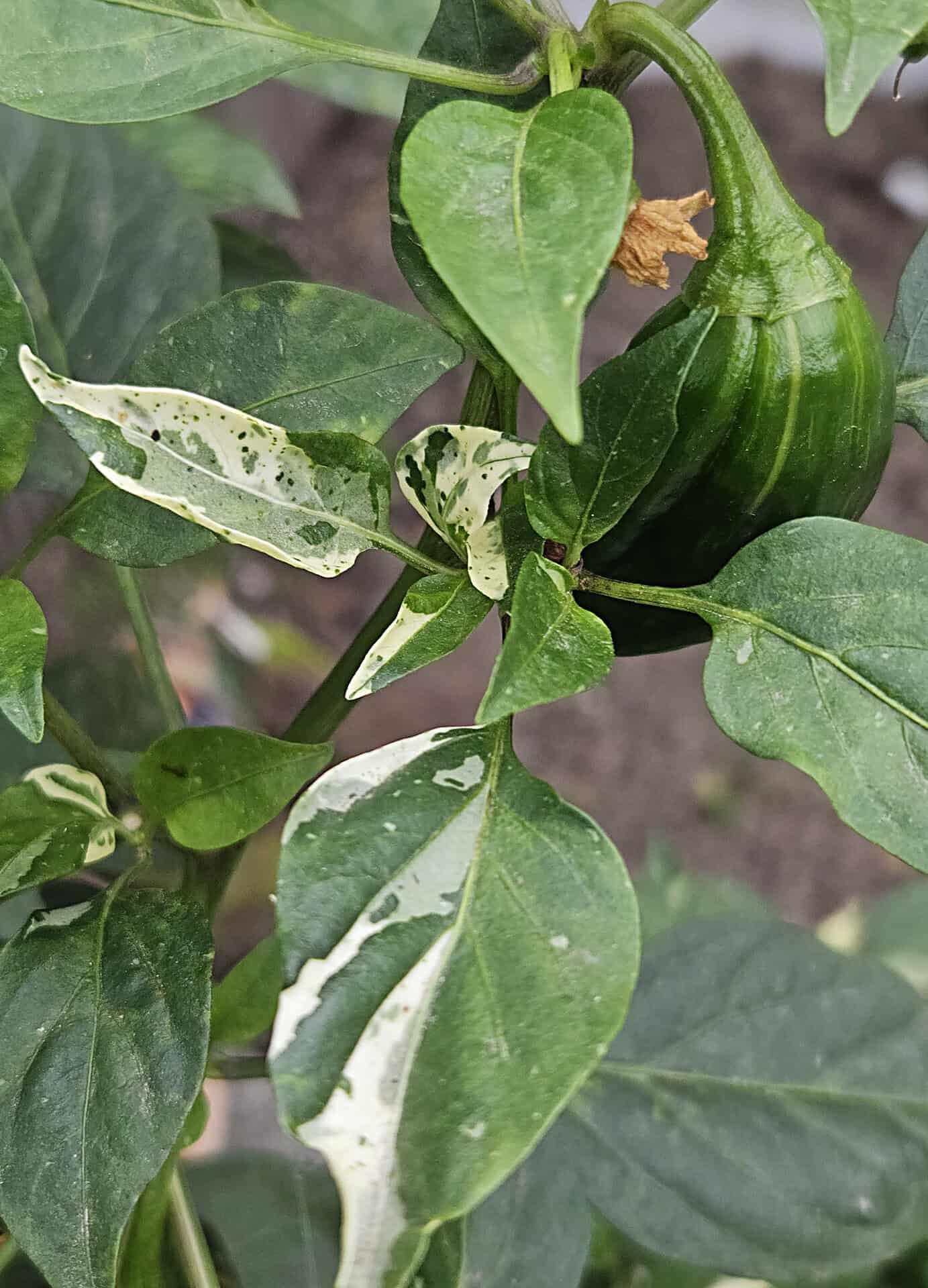 De Bryan’s Blood is een bijzondere selectie binnen de hybride lijn ontwikkeld door Eric Knight, ontstaan uit een kruising tussen de Scarletts Chili’s en de Ancho Poblano. Waar de Rainbow-variant sterk focust op extreme kleurovergangen en zware variegatie, staat de Bryan’s Blood bekend om zijn rustigere maar elegante expressie: fraaie, gelijkmatig gevormde vruchten met duidelijke groen-gele strepen en planten die regelmatig lichte bladvariegatie tonen.